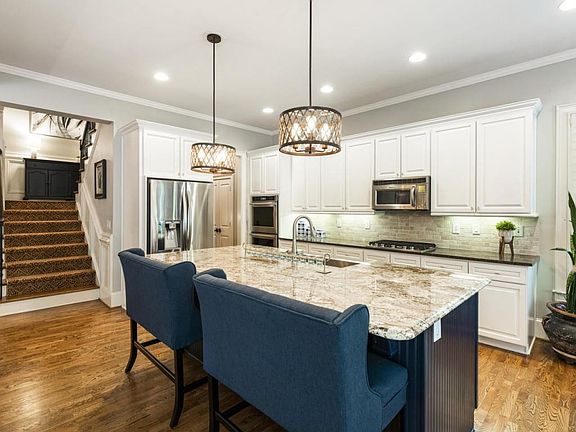 - Kitchen Features: Breakfast Bar, View to Family Room, Stone Counters, Kitchen Island, Breakfast Room, Cabinets White