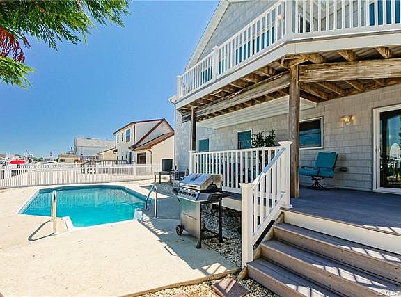 Welcome to this lovely well-kept home that has lots of space & versatility. With 3 BR's downstairs and 2 upstairs, there's plenty of room for everyone! The 1st FL features an open-floor plan with an attractive Kitchen with granite counters, stainless appliances, breakfast bar, & 42" cabinets with built-in lazy susan. The LR/dining area has sliding glass doors to a shaded lower deck, fenced-in backyard, inground pool, shed, & 40' of waterfront. Upstairs, the Master Suite features a walk-in closet, full BA w/jetted tub & shower stall, & sliders to an upper deck. An additional bright & airy LR has its own sliders to that deck. Gleaming hardwood floors throughout, carpeting in the BR's, tile in the BA's, & 2-zone ac & heat. Just a stone's throw from LBI, this is truly a delightful waterfront home!Disclaimer Buyer should be alerted to the fact that in some of our waterfront communities, ingress and egress by boat may be impaired at times due to the tides. There are dredging projects which have been proposed but have not started. Buyers should take the time to research the communities impacted and the status of the dredging projects. Your realtor has no special expertise in this area and does not make any representations regarding accessibility to the property by boat.