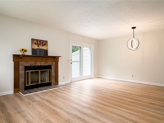 This sparkling end unit condo is ready to move in, with features rarely seen in a condo. Walk in and be surprised at the spacious open floor plan, including the updated kitchen with breakfast bar, new appliances and new LVP vinyl floors throughout the 1st floor. Features include woodburning fireplace, half bath, 1st floor laundry, uncommonly wide staircase, plenty of storage and professionally painted throughout. The unique 2nd floor design is newly carpeted and has 2 oversized bedrooms, BOTH with their own bathrooms! The largest can be considered the Primary Bedroom with walk in closet and dressing area. More updates include the new furnace and central A/C in 2021. Walk out the French door leading to the backyard and enjoy the quiet serenity with the natural green backdrop. This is maintenance free living with low taxes. The quiet community is close to RIT, U of R, URMC, shopping and highways. HOA restrictions do not allow rentals. Delayed negotiations with review of offers Monday, August 21 @ 5 p.m.
