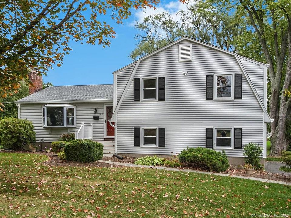 Neighborhood Setting! Close to Highcrest Elementary School. Meticulously maintained, multi-level split style home with spacious bedrooms, 2.5 gorgeous renovated bathrooms and attached two car garage. Welcome home to 100 Springdale Road. Enter into the bright and open living room featuring a gas fireplace and bay window. Living room connects to the formal dining room, both rooms with polished wood floors. Eat-in kitchen has plenty of cabinets with under-cabinet lighting, granite counter tops and recessed lighting. A few steps up is the bedroom level. You will retreat to the master bedroom suite with walk-in closet including California Closet insert, new bathroom with fine finishes and separate sitting area. Two other bedrooms share a renovated full bathroom with jetted tub. On the lower level you will find a family room, recreation room, half bath also with a California Closet bathroom organization insert and direct access to the garage. Patio French doors off recreation room open to back deck. Backyard is a great place to entertain your family and friends. Seller just had hardwood floors polished and interior freshly painted with neutral colors throughout. Additional highlights are: Newer roof, NEW (2018) Boiler and NEW hot water heater replaced, 3 zone heat, 200 amp electrical service (2011), thermopane windows, Trex composite front and back deck. CT Basement Systems 2018 and sump pump with battery back up. Move right in and enjoy! Square footage includes the heated, above grade 432 SF which is the family room, recreation room and half bathroom. Quote for flood insurance in attachments.