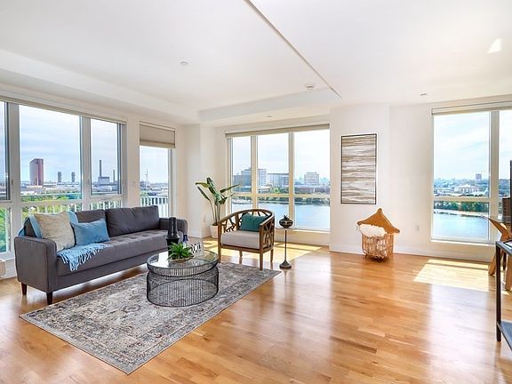 As you enter this gorgeous residence you are immediately met by breathtaking water views and a spectacular backdrop of the Boston Skyline. This impeccable 2 bedroom, 2 bath home is well-appointed with granite countertops, cherry kitchen cabinets, stainless steel appliances, and gleaming wood floors. The floor-to-ceiling windows offer loads of natural sunlight that flow throughout the space. Relax on your private balcony overlooking the Mystic River and enjoy the gorgeous fall foliage while being wowed from sunrise to sunset. The building amenities include concierge service, an onsite workout facility, a club room, game room, and garage parking with climate-controlled storage. All are located with direct access to Wellington Station, Assembly Row, and just a few stops to North Station. Easy access to Routes 93,128, the Massachusetts Turnpike and Logan International Airport. A perfect home for a downsizer or a professional. Do not miss this rare opportunity!