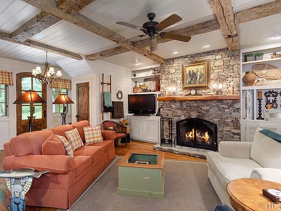 Enjoy cottage living at its finest in The Lake Club, one of Lake Glenville's premier communities. Tucked away at the end of the street on a nearly level lot, this three-bedroom, three-and-a-half-bath getaway offers peace and tranquility. The open floor plan boasts beautiful finishes, including shiplap, reclaimed beams, built-ins, and hardwood floors throughout. The kitchen, complete with custom cabinets, granite countertops, and KitchenAid appliances, allows for easy entertaining. Cozy up to either of the two wood-burning, stone fireplaces - one inside and one outside. As you step out onto the screened patio, picture yourself and your friends enjoying a cocktail or hot chocolate on cool mountain evenings. Or, if you prefer, take in the sights and sounds of nature among the lush greenery on the large uncovered deck. The primary suite on main offers a jetted tub, a walk-in shower, and a private deck. Upstairs are two spacious guest bedrooms and baths, as well as a large loft for additional living space. The second-floor ceilings are vaulted with cross beams. The community's numerous amenities include gated access, paved roads, a croquet lawn, and The Meadows, a park with a stream and pond. This lake community offers not only a multi-slip boat dock but boat storage as well. The magnificent clubhouse boasts a kitchen, several dining areas, a kids' playroom, expansive decks, and a fitness room.