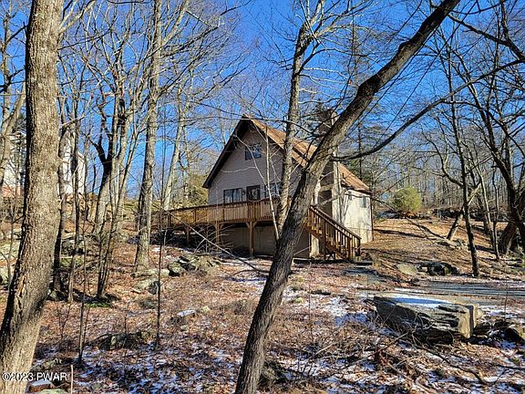 Cozy and adorable Chalet. Country, Great investment home, starter, or vacation home located in amenity filled community of Hemlock Farms. Open floor plan. dining room and living room with a brick fireplace wrap around deck surrounded by tall trees., Beds Description: 1 BED 2nd, Beds Description: 2+Bed1st, Beds Description: 1 BED 2nd, Baths: 1 Bath Level 1
