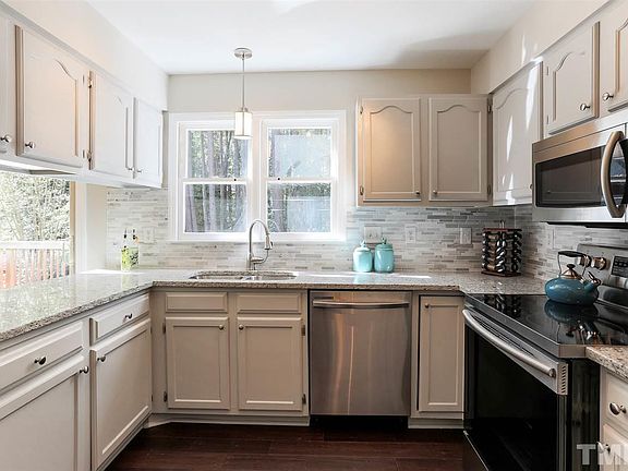 GORGEOUS Home with upgrades galore on Cul-de-Sac in Garner! Features a beautiful custom designer kitchen with new granite, tile back splash and Stainless Steel appliances. EXOTIC 5 inch Bamboo hand scraped hardwood flooring; NEW plush carpet & designer paint. Large flat back yard. New HVAC 2019. Convenient to White Oak Shopping Center. Move in and enjoy!
