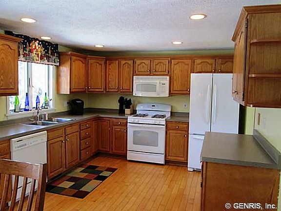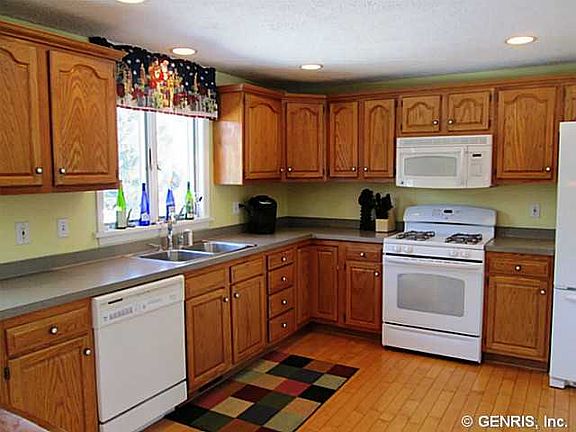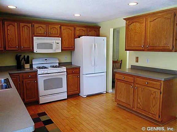Must see this immaculate, updated Penfield Home - Webster Schools Featuring: Oak cabinets w/ Hwd Floors, Light & Bright decor, Newer windows, roof, paint, some flooring. Whirlpool tub, HUGE-Fully fenced yard for the pooch!, BIG deck of Diningroom, Master Bedroom & BATH! Walk-out Lower level with Family room & woodburning Fireplace with slider out to flagstone / slate patio. Close / Walk to Greenwood park with playground, fields and plenty of room to relax. >>>This is your new home!! Don't miss out