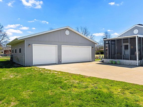 Updates include garage, roof, siding, windows & kitchen remodel. Beautiful 4 bedroom / 2 full bathroom ranch style home w/ 4 car garage & finished basement. Large living room features grand fireplace & opens to kitchen w/ ample cabinetry, tons of counter top space, breakfast bar, all appliances stay & opens to informal dining area. On the main level there are 3 generously sized bedrooms w/ spacious closets & full bathroom. Basement showcases family room, REC room, 4th bedroom, 2nd full bathroom, storage area & laundry room. 3 season room overlooks .75 acre yard, completely fenced with pond. Huge oversized 30x32 garage w/ additional 20x14 garage. Nice landscaping!