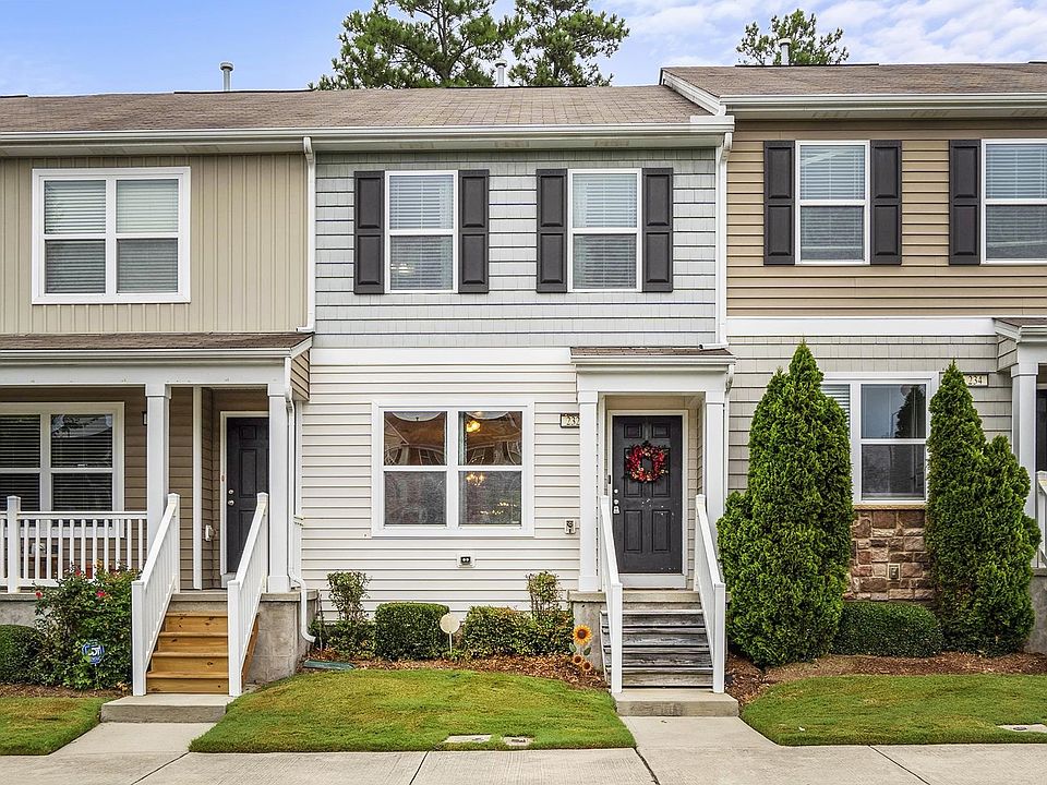Beautiful Townhome with great location close to Duke, UNC, RTP and Downtown Durham. Townhome offers Large Open Space Floor plan, with 3 bedrooms each with a full bath. Deck, Balcony that overlooks lake and greenway. Modern kitchen with granite countertops and bar. Hardwoods on main living area.Walking trails near by, Assigned Parking in front of unit. Ceilings, Open Living/Dining Room, Private bath with garden tub/shower, Washer/Dryer Closet in Hallway on 2nd floor All appliance convey. Recent H20 Heater