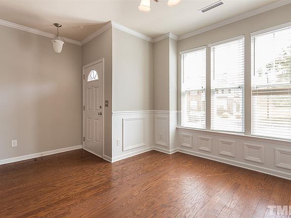 LAKE VIEW townhome in thriving city of Durham! NEW interior paint! Formal dining room w/ hardwoods & Wainscoting. Hardwoods continue to kitchen w/ SS appliances & can lighting. Living room with fireplace is a great place for weekends at home. Vaulted ceiling in master bedroom w/ walk-in closet. Master bath w/ tile floors & tub/shower combo. Extra trim work in secondary bedroom w/ full bath. Additional bedroom or bonus room in basement perfect for out of town guests! Enjoy outdoor living on back deck!