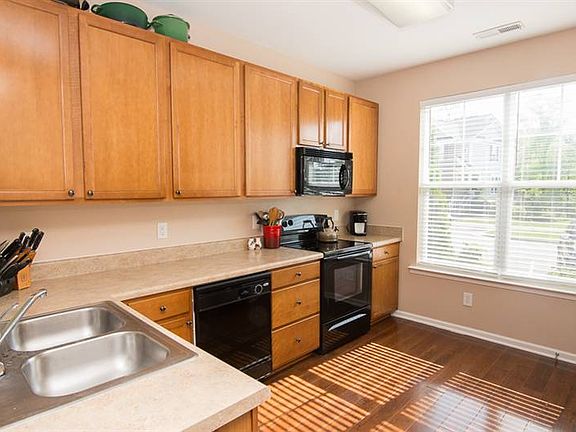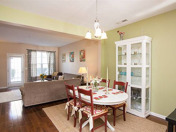 Easy living at Stratford Lakes. Two bedroom townhome in beautiful condition. Gorgeous hardwood floors on the 1st floor. Open floor plan, great for entertaining. Lots of light. Smooth ceilings. Private backyard, and it's a townhouse! Storage closet. 42" tall birch cabinets, sleek black appliances with smooth top range and refrigerator stays. Plus there's a pantry. Washer and dryer convey. Move-in ready with fresh paint throughout most of the home. Large master bedroom with cathedral ceiling. Super Durham locale.