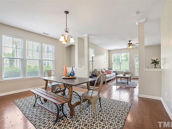 Beautiful & bright end-unit townhome in Stratford Lakes! Open floor plan w/ hardwoods throughout the main floor, new carpet, & new paint. Kitchen features SS appliances, plenty of cabinet space, & a large island. Upstairs has a large master bedroom w/ 2 additional bedrooms that share a jack and jill bath. New AC condenser '19! Back patio is perfect for relaxing or grilling out, & community features walking trails and access to 2 lakes. Centrally located right in the middle of RTP, Durham, & Chapel Hill!