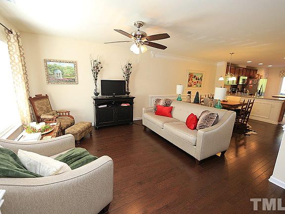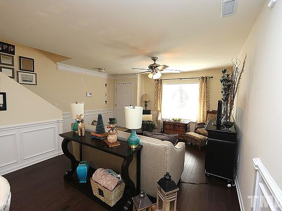 Impeccably maintained townhome ready for its new owner! Offers over 1800 sq ft, family room, spacious kitchen w/granite/ all appliances, dining area, 2 second floor bedrooms with private baths, and 3rd bedroom or bonus in the basement w/full bath. Features include hardwoods & powder room on mail level, beautiful moldings/wainscoating, deck, WI storage, and walking trails. Convenient to Raleigh/Chapel Hill, major hospitals, South Point Mall, and all of the dining you could ask for!