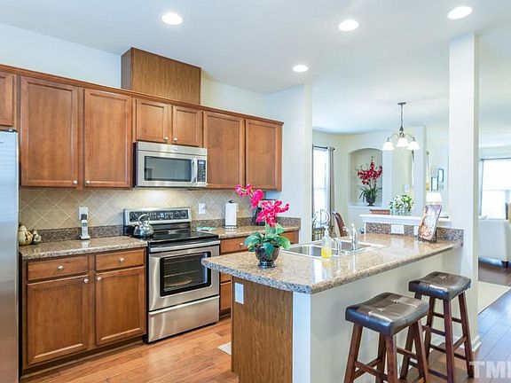 Available NOW! 5 mi to Duke | 3 mi to Southpoint Mall | 4.5 mi to RTP | 9 mi to UNC | 10 mi to RDU Airport Upscale & Beautifully Charming End Unit TownHome with a floor plan you will love! Pet friendly too! Gorgeous Open plan with a 5-inch-wide plank- real hardwoods throughout the First Floor- Entry Foyer, Living, and Dining room. Flowing plan with Kitchen connected to Living Room and Dining Room! Light-Filled home -light dazzling in through the bountiful wall of windows! The living room has a gas log fireplace, and fan/lights. Dining Room with Lovely Chandelier! Light-Filled home -light dazzling in through bountiful windows! with an island, breakfast area, Smooth top stove, Microwave, Dishwasher, SS Fridge. 42 inch Maple Cabs in this grand Kitchen. Microwave Vented to the outside! The living room leads to the back porch with storage and a fantastic yard and a large side yard - A landscape which will make you believe you are in a resort as you walk to the nearby Gazebo and relax or walk/run the trail around the neighborhood Lake! Upstairs: Spacious Master Suite with a sitting area and vaulted ceiling with lots of light. An ample walk-in closet space. Master Bath with raised vanity, tub/shower combo. 2nd Bedroom with attached bathroom and nice sized closet! 2nd and 3rd bedrooms share Jack & Jill bath w/tub/shower combo-So all bedrooms are connected to a Full Bathroom. 3rd bedroom could be used as an Office/ Nursery. Laundry closet with Washer & Dryer. Two Parking reserved spots in front of the house. N'hood Walking Trails with a Lake! Recreation Facilities with Gazebo, Picnic Table, Outdoor Grills & Lake trail! 5 mi to Duke 3 mi to Southpoint Mall 4.5 mi to Research Triangle Park (RTP) 9 mi to UNC 10 mi to RDU Airport Two reserved parking spaces Guest parking nearby Washer & Dryer included Central heat/AC Pet-friendly (with pet rent case by case) No smoking Minimum credit score of 700 required To schedule a showing or apply, please include: Place of employment Desired move-in date Approximate credit score Details about pets (if any) Reason for your move Tenant Pays Utilities. Credit scores of above 670+ a must.