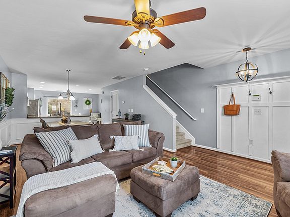 Lovely 3 bedroom, 3 1/2 bath townhome in great location. Main floor has open floor plan with large kitchen and breakfast nook with built-in seating. Half bath downstairs. Sliding doors lead to patio with attached storage. Second level has 2 bedrooms each with attached full bath. Primary bedroom has large walk-in closet and en suite bath. Charming updates throughout. Two dedicated parking spaces and ample visitor parking. Ideally located between Downtown Durham and RTP, convenient to Southpoint and the American Tobacco Trail. Community features walking trails along 2 lakes.