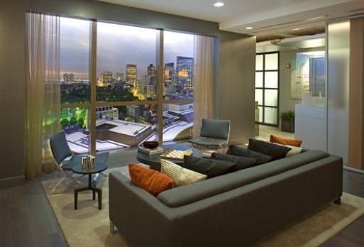 W Boston in it's iconic glass tower is also Boston's newest premier residential address... enjoy Jean-Georges’ MARKET restaurant, the LIVING ROOM lounge and soon to be open BLISS spa. 270 degree views of Charles River, Beacon Hill, Public Garden, Common and business district skyline. Very NY dramatic living space. Great sun!