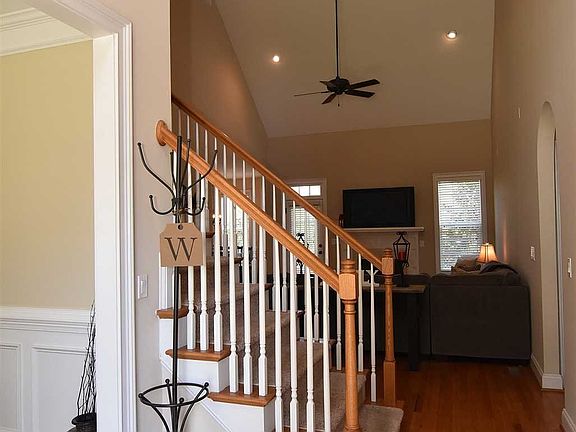 Delightful! Warm and inviting, this custom brick home features high ceilings, hardwood floors with master on main floor along with 2 second bedroom on main floor (split plan). Beautifully appointed kitchen with stainless appliances gorgeous granite countertop and bar and spacious eating area. Family room with soaring ceilings, fireplace and hardwoods. The garage is large enough to comfortably park 2 cars and store other items. Plantation shutters and carpet added by current owners who purchased home in 2016. The carpet is in very good condition. Upstairs features 2 more spacious bedrooms and bonus room with closet (for 5th bedroom, if needed). There is a large walk-in attic which provides significant storage. Located on cul de sac court, the backyard features deck and wonderful yard with various plants and trees. This home sits on a hill with a well manicured yard sloping down to the street. Community boat ramp available to owners! Timberlake country club close by with memberships available!