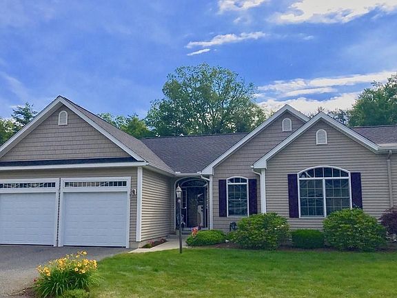 Absolutely stunning garden condo in desirable location near culdesac! ONLY unit available at sought out Tall Pines Condominiums! Gorgeous exterior and landscaping! Back deck has awning that easily opens/closes for convenience! Deck leads to patio for grilling and extra outdoor space! Front door greets you to a beautiful open plan! Livingroom features cathedral ceilings, hardwood floors, gas fireplace! Office/Den boasts french doors and is such a fabulous added space! Kitchen has granite countertops, bar stool area, hardwood floors, pantry, and is open to the dining room w/hardwood floors and sliding doors that lead to trex deck! Awesome Master Bedroom suite w/walk in closet, full bathroom with jacuzzi tub, shower, double vanity, linen closet! Guest Bedroom is adjacent to a full bathroom, cathedral ceilings, plenty of light! Very spacious basement is great for storage or to finish off if desired! Oversized 2 car garage! Central air, security system! Pristine condition, move right in!!