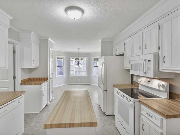 - RoomKitchenFeatures: Kitchen Island, Pantry, Eat-in Kitchen, Bay Window, Counter Tops-Formica, Floors-Vinyl, Cabinets-Painted
