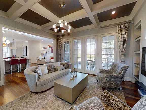 - RoomLivingRoomFeatures: Fireplace, High Ceilings, French Doors, Floors-Hardwood, Molding, Ceilings-High (over 9 Ft), Recessed Lights, Ceilings-Box