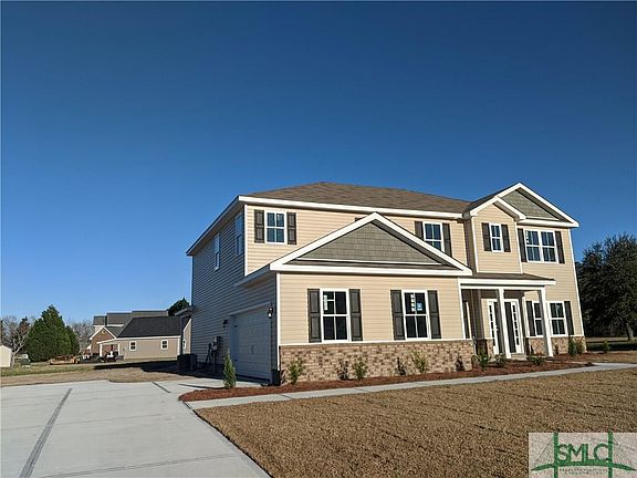 The OXFORD Plan by Horizon Home Builders of Savannah! This stunning home with it's beautiful brick accents and side entry garage is situated on over a half acre lot. The luxurious vinyl planking flooring runs thru/out the downstairs living space which includes a separate formal dining room, office, great room open to the dream kitchen w/ it's large island & granite counters. With this open concept you will enjoy entertaining both inside by the electric fireplace and outside on the 12 X 18.5 covered back porch! Eagles Landing subdivision is located near downtown Guyton, a historically rich community established in 1797. Just a few miles away is the home of the GA Southern Eagles in the ever growing college town of Statesboro, GA. Builder's incentives include 2-10 Home Warranty, energy efficient spray foam insulation in roof deck, termite bond, & Builder pays $4000 toward closing costs with a preferred lender. Come on down to Effingham County with it's easy living and carefree lifestyle!