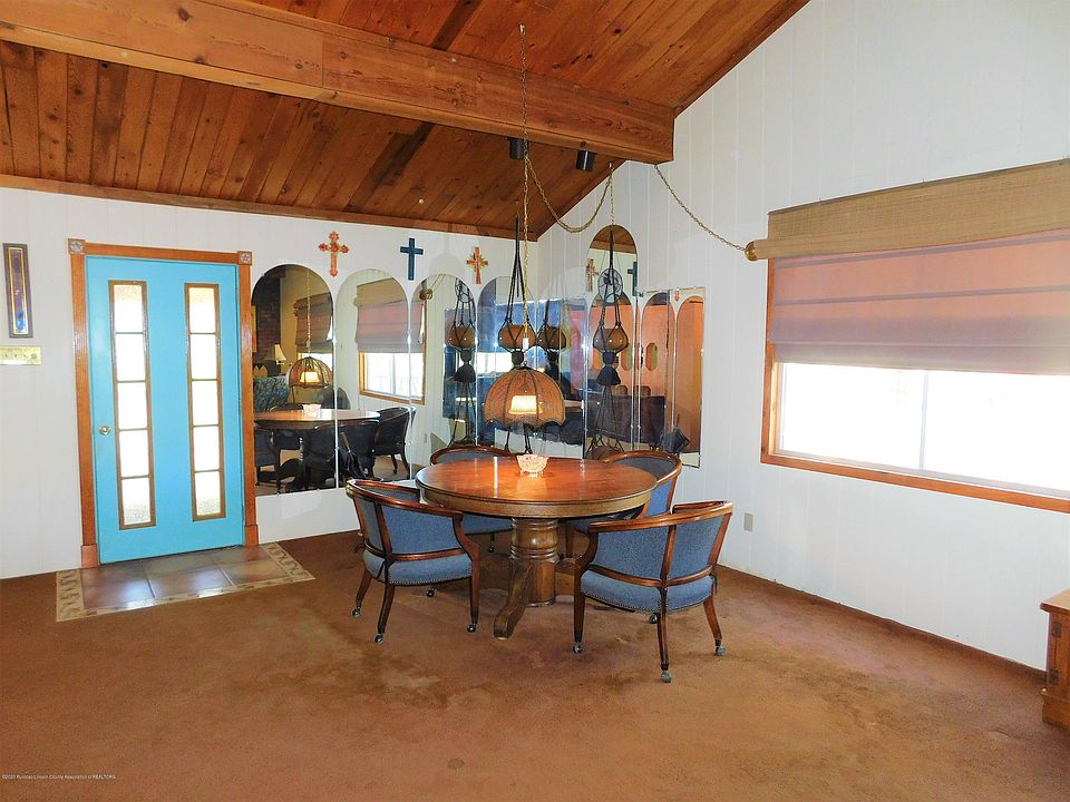 Unique home with lots of character! Large 4 bedroom 4 bath home selling fully furnished. Beautiful wood accents throughout. Level 0.78 acre lot with a large two car garage. Just seconds away from the Inn of the Mountain Gods. Home is split into two levels with two bedrooms and baths upstairs and two bedrooms and baths downstairs. Lots of room for the entire family or would make a great nightly rental with a great location!