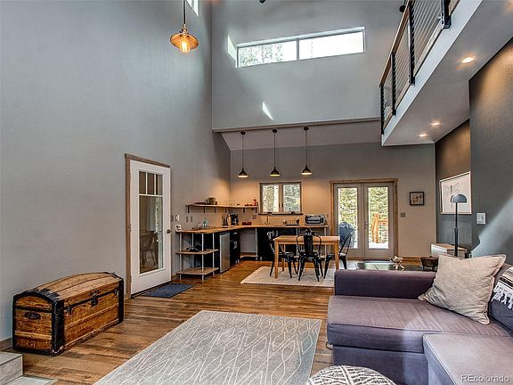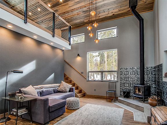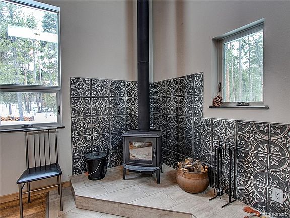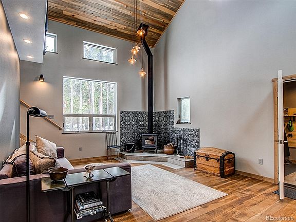 Contemporary Mountain Retreat custom build to appreciate the natural surroundings. Interior delights with abundant triple pane windows, easy to create a mountain cross breeze. The ceilings lofts up to a beautiful tongue and groove beetle-kill pinewood boarding. Engineered wood floors throughout are beautiful and easy to maintain. Contemporary lighting features recessed lights and fixtures that enhance the space. A wood-burning stove warms the great room with its charm and heat. Large loft is easily a second bedroom. The kitchen is open and streamlined. A welcoming front porch and a backyard deck to enjoy! The home was lovingly built to be energy efficient. This home features 100% Solar Power! The home is all run on modern electrical efficiency appliances. This home is run on owned solar. This completely electric-powered home has been blown insulated. Enjoy affordable utilities. 1 hour from Denver! Easy access to Golden Gate State Park. Property Owners association gives you access to Meadow lake. Recreation activities galore await the new homeowner.