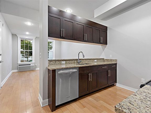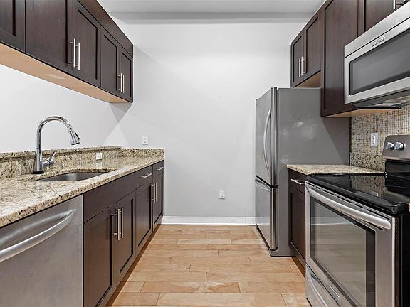 Welcome to Liberty Harbor with all its charm and amenities to make life easy breezy. With over 680 roughly 700 sq. ft. of living space, this 1st floor spacious condo marries luxury with modern conveniences. Features of this recently renovated 1 bedroom, 1 bathroom condo include Smart Home technology with built in I-pad, hardwood flooring throughout, recessed lighting, 9 foot ceilings, crown molding, oversized windows that bring in tons of light, bedroom with large walk in closet and custom closet system, kitchen with breakfast bar, stainless steel appliances, washer & dryer in unit, and lots of storage space. Top notch amenities including 24 hour security, rooftop pool & fitness center, Jacuzzi, play area, private movie theatre, pool table, and community room. This is a well-managed condominium in a quiet corner of Jersey City next to the recently completed Morris Canal Square Park with convenient access to downtown Jersey Citys pedestrian plaza on Newark Ave, as well as shops, restaurants and the waterfront. 10 minute walk for easy access to NYC via Path/Ferry, or to Liberty State Park via the upcoming pedestrian overpass on Jersey Ave (to be completed in 2021). Parking (both indoor and outdoor) Available for an additional fee. Investor friendly with an active/performing lease.