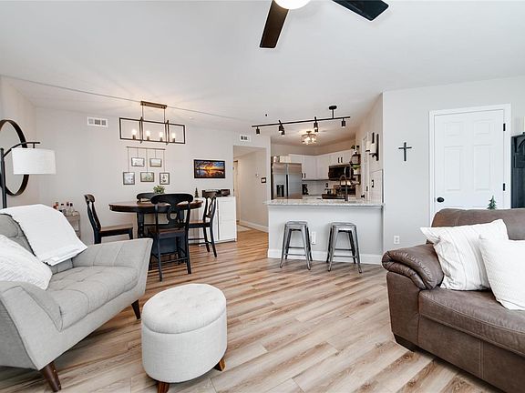You will not want to miss this newly renovated condo. This main floor condo is move in ready and provides an open floorplan. Recent updates include luxury vinyl flooring throughout, hard surface counters, and new vanities in both bathrooms. The smartly planned kitchen has plenty of cabinetry, a pantry and breakfast bar. Primary ensuite is quite spacious and provides a walk in closet. Secondary bedroom offers 2 closets and a private entrance to the hall bath. Laundry is conveniently located in the hall closet. Additional features include newer HVAC, one car garage, and an ample storage room in the lower level. Enjoy some outdoor space on the deck with a nice view of trees. Close to everything at Hwy N, I-64/40 & Bryan Rd. Easy access to nearby Dardenne Prairie City Hall Park, O'Fallon Youth Park, Town Square & many upscale stores & restaurants! Just in time for the holidays! Location: Ground Level