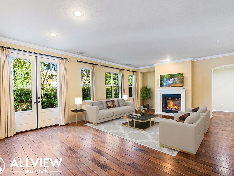 One of a kind 4 bed, 3.5 bath townhome in Irvine's finest Woodbury community! This is a corner unit with one of the largest backyard in this amazing community. This home as an abundance of upgrades throughout. Wood flooring throughout the bottom level with a spacious open floor plan. The living room has a beautifully customized book shelf, a cozy fireplace, oversized view windows, and double glass doors that leads into the immaculate landscaped backyard. An updated gourmet kitchen with granite countertops, and stainless steel appliances. Two spacious master bedrooms with custom walk in closets, and luxurious mighty sized bathrooms. Master bathrooms with dual vanities, and luxurious bathtubs. Third bedroom has its own private bathroom with shower. Enjoy a walk in laundry room with in unit washer/dryer and plenty of storage space. Resort style amenities include a club house, parks, 7 swimming pools, tennis courts, picnic areas and walking, and biking trails. Walking distance to Woodbury Town Center! This home is a must see. Schedule a showing today!