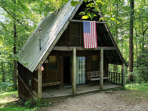 Looking for a perfect getaway cabin at Cave Run Lake? Check out this rustic A-Frame style home surrounded by the Daniel Boone National Forest only minutes (3.4 mile) from Longbow Marina. The interior of this 2 BR, 1 BA home is completely finished with solid poplar wood/trim. The main level offers an open floor concept with an eat in kitchen, living area and bathroom. The second level offers two bedrooms with each providing a separate walk out balcony. You will find additional living space in the half-basement with walk-out access. All situated on .57 acre wooded lot. This would also be a perfect investment opportunity for short-term rentals. Schedule Your Private Viewing Today!