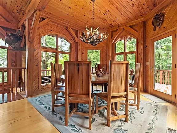 Nestled on the bluffs overlooking the Little Red River, this stunning home captures the essence of mountain lodges known for their grandeur and connection to nature. Renowned for its trout fishing, the Little Red River provides a picturesque backdrop for this property. Architectural Highlights: The home boasts massive wooden beams and extensive use of timber throughout, creating a warm, rustic ambiance. Entertainment: Watch the sunset over the river from your living room or easily entertain guests. For a refreshing break, take a quick swim in the private pool. Natural Features: Explore the property via wooden boardwalks that meander past scenic waterfalls and lead to the river's edge. Unique Flooring: While predominantly wooden, the home features unique limestone flooring embedded with fossils, adding a touch of geological history. Additional Amenities: Guest House: A separate 650 sqft guest house complete with a full kitchen, offering privacy and comfort for visitors. Home Generator: Ensuring uninterrupted power for peace of mind. Recognition: This home has been featured on the cover of Arkansas Magazine, a testament to its exceptional design and setting. This property is a home and a retreat where nature and luxury intertwine, offering an unparalleled living experience. The renter is responsible for water and utilities. There is NO smoking in the home. Small dogs are allowed will be responsible for any damage.