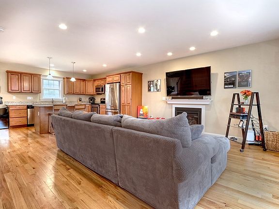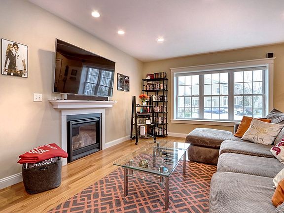 Better than new townhome set privately at the end of a cul de sac with conservation land behind. Open floor plan with gas fireplaced living room, kitchen with center island, upgraded cabinets with extra pantry storage and granite counters, dining area with slider to composite deck. A half bath and great storage closets complete the first level. Upstairs are two bedrooms with oversized closets and a full bath each plus laundry. Hardwood floors throughout both levels. Young finished basement with tile floors, home office, large storage area with shelving, walk out to the back yard. Great sound-proofing, custom blinds throughout, gas line at range, well-run complex. Private showings start Saturday, 1/9.