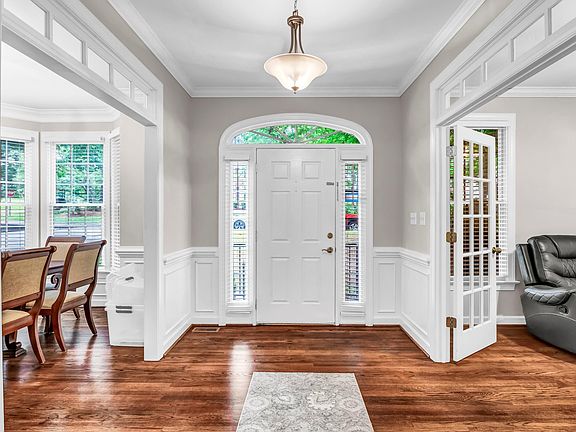 An open entry creates a sense of spaciousness and flow as you enter your new home! The front door with both side lights and a transom window is an architectural feature that serves to brighten the entry area. Refinished hardwoods & crown molding throughout the main level adds warmth and elegance! Separate office features French doors & transom to allow natural light to flow. You'll also enjoy this feature in the formal dining room along with wainscoting & bay window for those special events! Open living room w/gas fireplace for cozy evenings & gatherings flows into the renovated kitchen offering real wood soft-close cabinets, sleek quartz countertops, and top-of-the-line black stainless steel appliances. The centerpiece island offers both style and functionality! Half bath also recently renovated with new vanity & toilet. Escape to the owner's suite with his/hers WIC's & private renovated owner's spa w/a vaulted ceiling, inviting garden tub, a meticulously tiled walk-in shower & his and hers vanities! Two of the bedrooms feature spacious walk-in closets, providing ample room & the remaining two bedrooms boast double closets, offering practical storage solutions! Full hall bath remodeled with granite countertops, new vanity & tile. Bonus room on the 3rd floor to use as you choose-playroom, home gym, extra storage or home office, you decide! Enjoy the deck w/privacy screen and spacious fenced backyard or venture out to the community pool & tennis courts to meet your neighbors! Won't last long, so don't delay!
