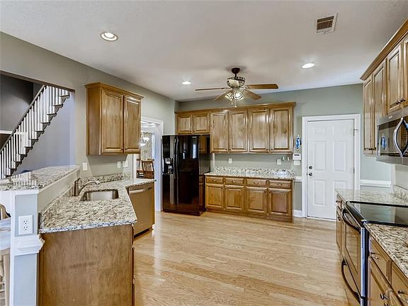 - Kitchen Features: Breakfast Bar, Cabinets Stain, Pantry, View to Family Room, Stone Counters, Breakfast Room
