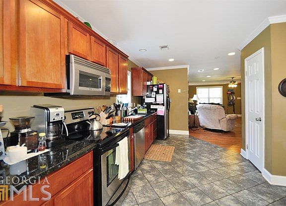 Charming 3 bed / 2 bath updated bungalow in the heart of Edgewood. Classic large front porch. Family room w/ recessed lighting, hardwood floors & crown molding. Kitchen w/ stainless appliances, granite counters, stained cabinets & breakfast area. Separate dining room w/ trey ceiling w/ french doors that lead to deck overlooking the private, fenced backyard. Oversized master bedroom w/ sitting area, walk-in closet & bath w/ dual vanity & separate whirlpool tub & shower. Also features off-street parking, hardwoods throughout main, newer siding & roof.