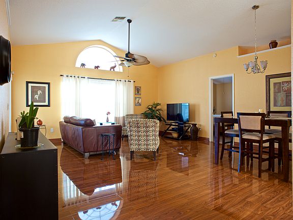 Single-story home offers 3 bedroom, 2 bath, 2 car garage,1433 sq ft, in ground swimming pool, screen enclosure,large dining-living room combo, indoor laundry room, eating space in kitchen, newer cabinets, counter tops, ceramic tile in bedrooms and wet areas,Master Bathroom boasts double sinks, garden tub with separate large shower,Master Suite features vaulted ceilings and His & Hers walk in closet, guest bath door to the pool allowing guests to change clothes without tracking wet footprints through the house. Lovely covered lanai area for shade and entertaining. Outside your front door you have a park view as part of the community amenities, low Home Owners Association fees, pride of ownership shows in this well maintained community. All information submitted on this property is intended to be accurate, however can not guaranteed, buyers are advise to verify.