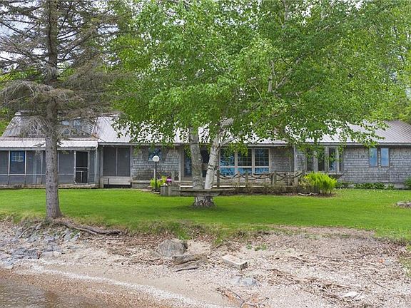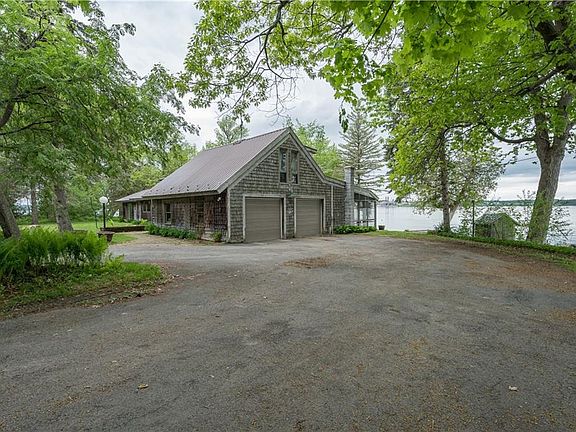 Make your riverfront dreams a reality. Year-round home on the St Lawrence River. Over 400 feet of waterfront with a sandy beach area, kayak launching spot, dock and park like setting on Stillwells Point. Peaceful location that offers Shipping Channel views and Brockville is across the river. Screened in Porch has heaters for extending the seasonal use. Above the attached 2 car garage is a seasonal 'apartment' that could be renovated as a 3rd bedroom. There is also a detached garage with a heated workshop and space for a boat and/or additional toys and another vehicle. Cedar shingles on the home and metal roof have a destinctive classic look. Open floor plan with wall of windows facing the water brings the outdoors in, and is truly breathtaking. I was able to watch a mother Loon with her 8 babies while I was taking the 3-D virtual tour that is a must see! Original building plans are available. This was built as a passive solar design and is very heat efficient. Home is being sold as-is, and the price reflects that fact. It won't take much to make this your dream home or seasonal retreat property.