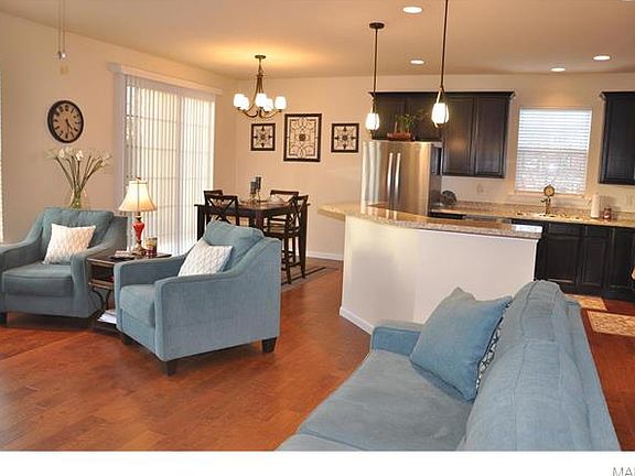 Incredible craftsman style ranch home w/ 3 bdrms & 2 full baths w/ over $15K in extra options, in the Wonderful MiraLago Community. This home features a beautiful exterior w/stone enhancements, vinyl siding, carriage style garage doors, 30 yr architectural shingles, 12 x 12 cedar deck & a full sodded yard. Amazing interior w/delights at every turn...Custom kitchen w/ 42" wall cabinets, crown molding & custom center island w/ breakfast bar & Whirlpool stainless steel appliances. Open Great Room w/ gas fireplace, great natural light, sliding glass door & gorgeous wood floors flowing throughout main living area. Master bedroom suite w/ luxury master bath which includes separate tub, shower, raised height double vanities & huge walk in closet. Main floor laundry, look out basement on a huge corner lot in a community that offers green space, trees, community lakes and close to restaurants & shopping galore. Easy access to 70, 94 and 364. Motivated Seller!