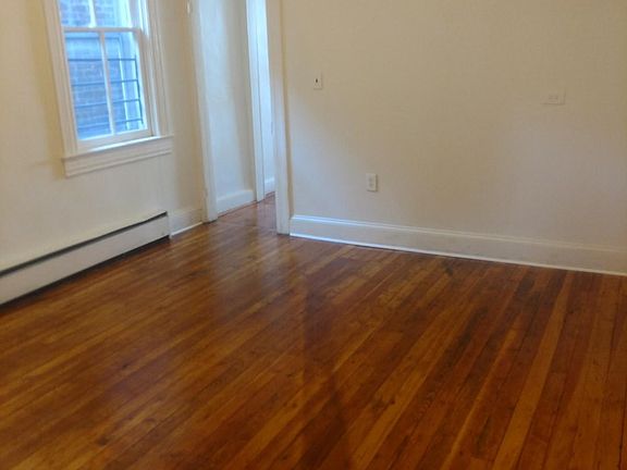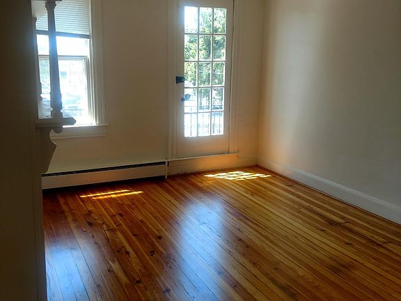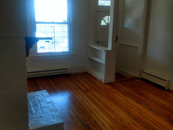 So much original character in this rowhome with covered wrought iron front porch. Freshly painted, hardwood flooring throughout and decorative fireplace/mantles. First floor offers living room, separate dining or bonus room, half bath with laundry and kitchen with gas range. Rear door opens to small, fenced yard. Second floor has two big bedrooms - front bedroom has a decorative mantel and tons of natural light; rear bedroom features full bath and bonus room perfect for an office. House is ideal for a single renter, couples or roommates that don't mind the full bath being in the master bedroom. Close to Hopkins, MICA and commuter routes! Tenant pays all utilities including water.