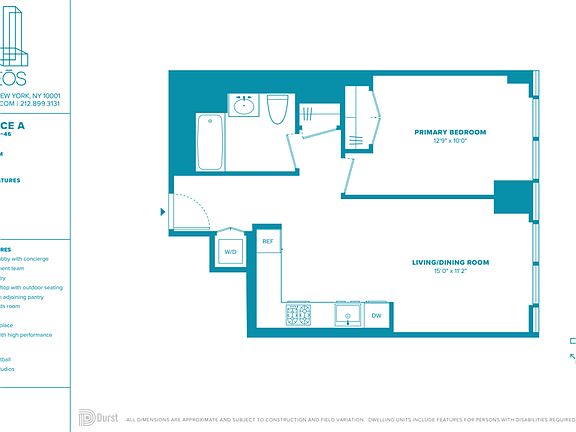 FARE Act Disclosure. This listing is intended to be used by prospective renters and may not be republished without the prior written consent of The Durst Organization. Absent an express written agreement or acknowledgment to the contrary, The Durst Organization and its affiliates (1) do not utilize the services of third-party brokers or agents in connection with the rental of residential apartments and (2) will not assume responsibility for any brokerage fees incurred by a prospective renter. The Durst Organization and its affiliates will not charge or collect fees from a prospective renter except for such fees as permitted by law and disclosed to the prospective renter.