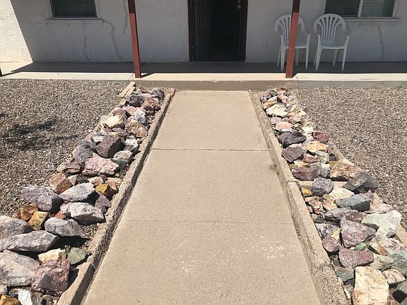 806 Square Feet, 2Be 1Ba with many improvements. Newer roof with architectural shingles, stuccoed exterior, evaporative cooler recently refurbished, window A/C units, ALL new slider windows. Open kitchen floor plan, walled back yard, mature desert landscaping, wall natural gas heat, corner lot, close to downtown and Ajo Historic Plaza. Double car garage can easily be a workshop plus one car. Owner recently invested much time and money in fresh interior paint, all new carpeting, additional ceiling fans, major cleaning, etc. Comes with refrigerator, oven/range, clothes washer and dryer.