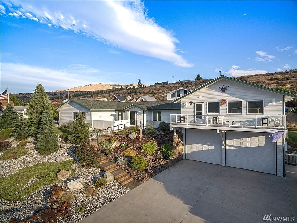 Immaculate Columbia River view home in the desirable Lake Entiat Estates/Sun Cove community. Meticulously maintained, enjoy 3 master suites w/ attached baths. Chief master suite includes tiled fireplace, cedar sauna, 2-person jetted tub & huge walk-in closet. Expansive great room features vaulted ceilings, resilient hardwoods & entertainer's kitchen. 1,456 sq ft double bay garage/shop with 13 ft doors and separate 480 sq ft attached garage. Special Features and Sun Cove Amenities page attached!