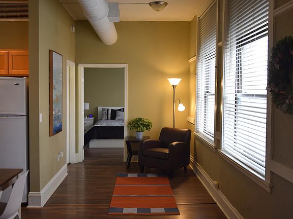Located in the historic Federal Building in heart of downtown Youngstown, this unit sits above the V2 Wine Bar Restaurant. Open concept of the living room and kitchen allows you to design your own space. This historic building built in 1898 and fully rehabbed into apartments 6 years ago has the combined look of the original bank with modern amenities. This is a great location. All utilities included