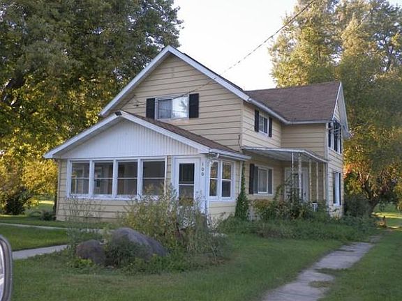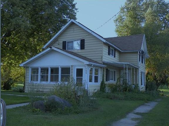 Exterior Features:Home is a .75 acre lot. Curb appeal is good. Siding is aluminum and and in good condition. Roof is shingle type in good condition. Driveway to three car detached garage. Wood windows are intact. Corner lot in farm land. Well water and septic system. Interior Features:This is a 3 bed 1 bath house with 1530 sqft. Flooring is vinyl and carpet and in good condition. The kitchen has sink, counters, cabinets and a refrigerator. Bathroom has tub, sink and toilet. There is a basement with a gas water heater and a gas furnace. No a/c. Light fixtures are present. Plumbing and wiring seems to be intact. No missing interior or exterior doors.