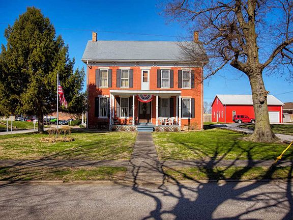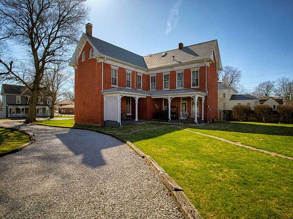 Charming & Historic 2 story brick home located in the heart of Fort Branch, IN. Built in approximately 1880, and locally known as the Atterbury/Boger house. This home offers quality original woodwork and hardware that are unique to the craftsmanship of the period. Situated on a large corner lot, this house features elegant landscaping and a 30 x 40 detached building. Features: Beautiful Stained Glass window showcased prominently as you walk up the spiral staircase, 2 gas fireplaces, 10' ceilings, 2 full baths, 3-4 bedrooms, stunning pink dogwood trees, and new 50-year synthetic slate roof. This home is a must see!