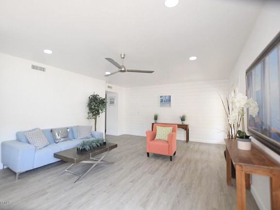 * Mid-Century Condo, Located right off the Bridle Path, Walk/Bike to Restaurants, Uptown Farmer's Market,Fully renovated with new aqua guard flooring throughout living area and plush carpet in bedrooms ,brand new kitchen with SS Appliances and quartx counters , Eat-in Area, Large Pantry, Spacious Living Room is Light & Bright,, Recessed Lighting, Dining Area, Master Bedroom w/ Walk-in Closet! * Inside Laundry, Additional Hallway Storage * Both Baths Updated w/ New Vanities, Updated Lighting * Large Patio with garden beds overlooks the pool in this small community of only 18 homes, Storage Room * Low Taxes, HOA fee includes Hot Water, only owner bill is APS *