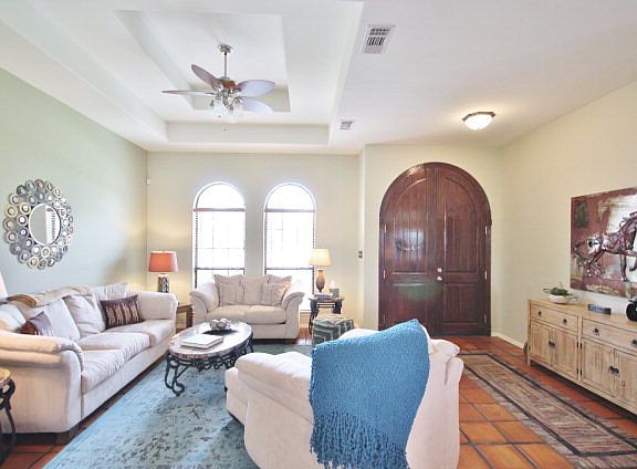 Lovely home located in gated certified 55+ subdivision. This house has been very well maintained with it's large newly varnished front doors, to the new paint both inside and out. Satillo tile through out. Large living area flows into the lovely kitchen with granite counters, new drawer glides, knobs and a Moen faucet. Roomy walk in Master shower with two shower heads and large built in bench. Beautiful covered patio with many fruit and orchid trees to entertain friends and family alike. New sprinkler system both front and back. Put this one on your clients list of homes. You won't regret it.