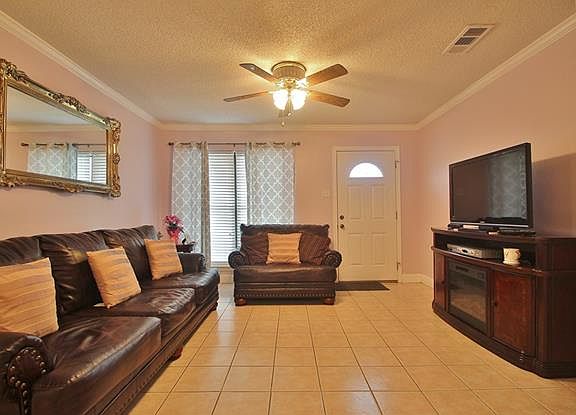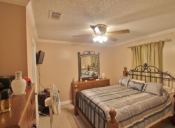 Neat as a pin, situated on corner lot, this home has landscaping, stutters, hurricane window covers, gutters, storm door, double atrium doors lead to covered patio, shed, crown molding, ceiling fans in every room, blinds, stove and microwave stay.