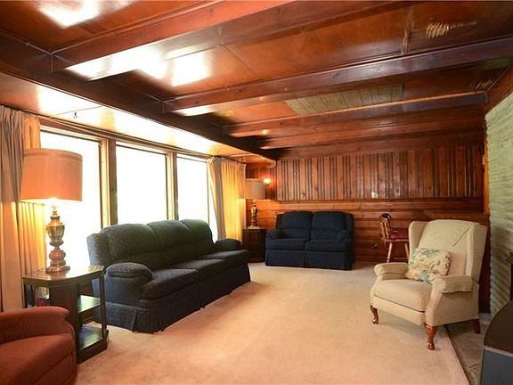 Opportunity for a spacious ranch on 1.33 Acres! Bar in Living Room. Two additional lot dimensions are 127 and 203 More or less. All large room sizes, newer roof, beautiful cul-de-sac neighborhood, wide asphalt drive. Oversized Omni-stone patio. Two car ATTACHED garages need doors, but true one level living. Dining room with vaulted ceiling. Den with built in bookshelves. Close to 376, airport, new Shell plant. Incredible, sweeping 1.33 acre lot. Home was built by and occupied original builder in plan.