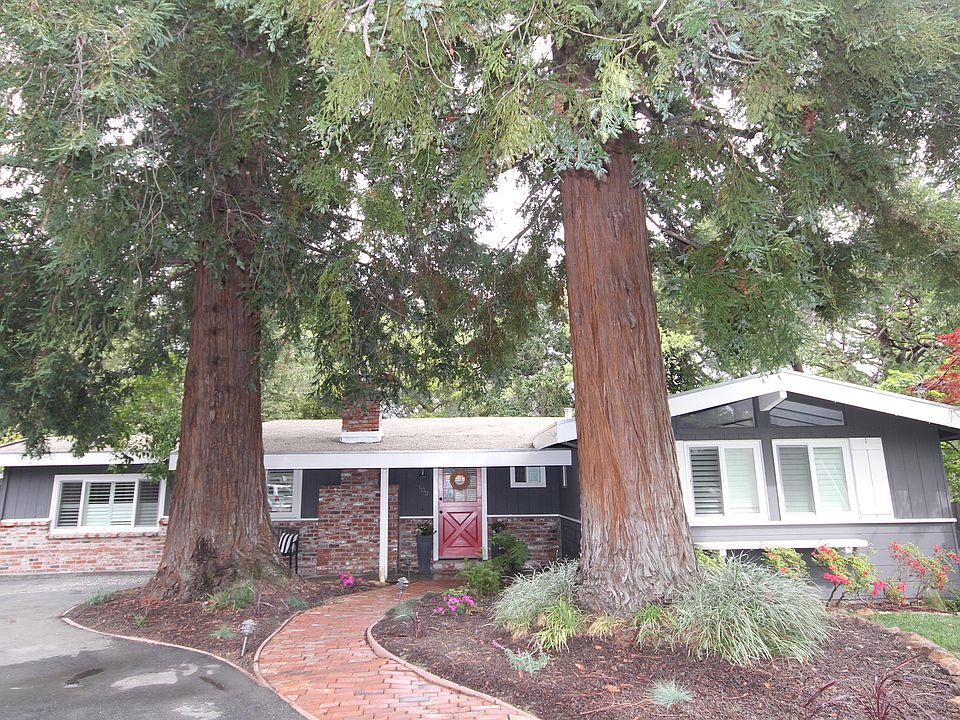 This charming Eichler style home is located on a large, 10,000 sq.ft. lot at the end of a quiet court surrounded by towering redwood and oak trees in the highly sought after Strandwood Estates neighborhood. Welcoming living room with a beamed ceiling and wood burning fireplace, gleaming hardwood floors and French doors off the foyer leading to the beautiful, spacious backyard deck and pergola. The kitchen is updated with granite counters, recessed lighting, subway tile back splash and stainless -steel appliances and opens to a spacious family room with French doors leading to the private, spacious, park-like back yard. Also, you will find a large side yard with a fully irrigated raised bed garden. Other features of this home include remodeled family room and laundry, hardwood floors, new dual pane windows, Plantation shutters and stylish updated baths. This is a very special home!