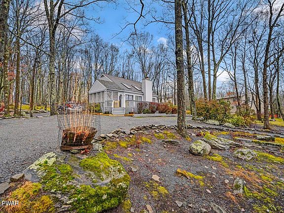 Welcome to your new home in the Pocono Mountains! This contemporary home offers the perfect blend of modern living and natural beauty, nestled on a generous .70-acre lot. With 4 bedrooms, 2 bathrooms, all main living areas on the 1st level & hardwood floors throughout, this is the home that you've been looking for. Inside, you'll be greeted by an inviting open floor plan that seamlessly connects the living, dining, and kitchen areas. The cathedral ceiling overhead creates a sense of spaciousness and airiness, while large windows and skylights flood the interior with natural light.A focal point of the living room is the cozy fireplace with a pellet stove insert that adds charm & an efficient heat source. Step outside onto the wrap-around deck, perfect for soaking in the fresh mountain air. The spacious back deck offers ample space for outdoor gatherings, whether you're hosting a barbecue with friends or simply enjoying a quiet morning coffee surrounded by nature.A firepit awaits in the backyard, providing a perfect spot for enjoying the nighttime stars.Don't miss your chance to make this piece of Pocono paradise your very own. Welcome home to the life you've always dreamed of!